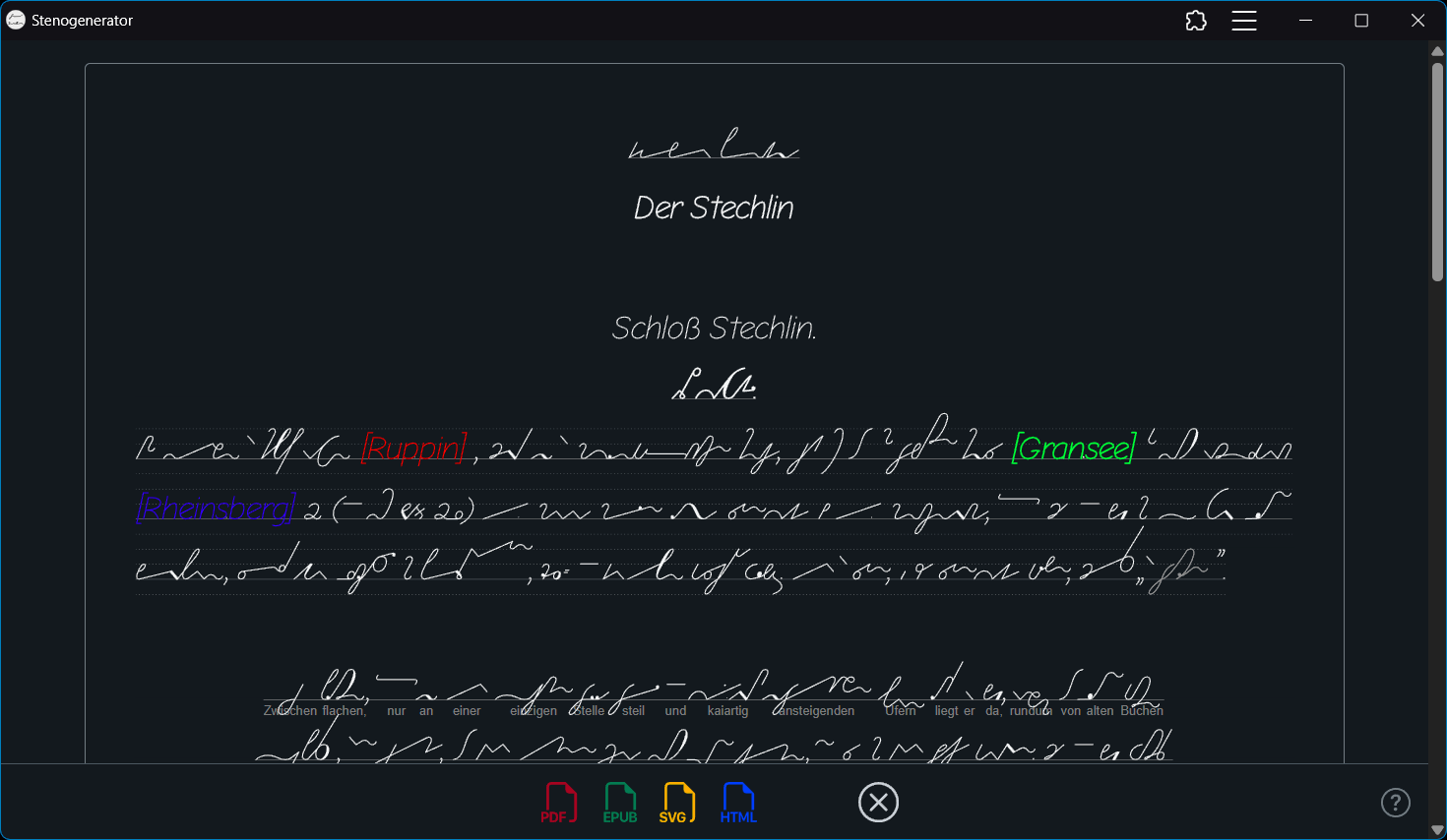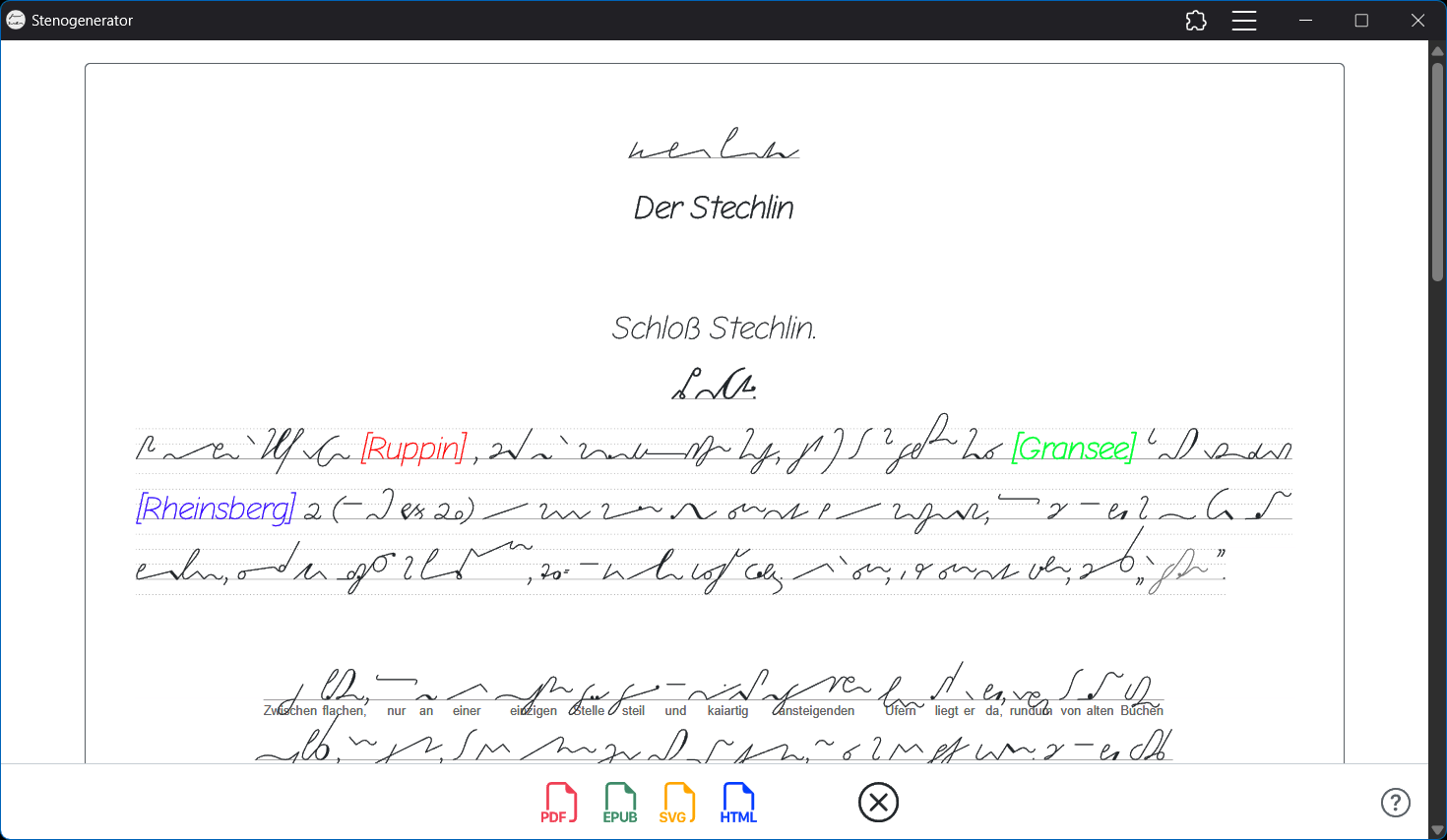 Die Web-App ist teilweise in der Entwicklung. Die Stenogramme können zur Zeit nicht als EPUB erstellt werden.