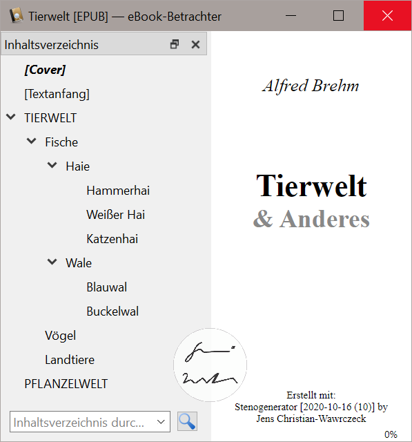 Zur Zeit wird die Gliederung nur in den Dateiformaten ePUB und HTML berücksichtigt. Es ist in Planung, dies auch für die anderen Dateiformate umzusetzen.
