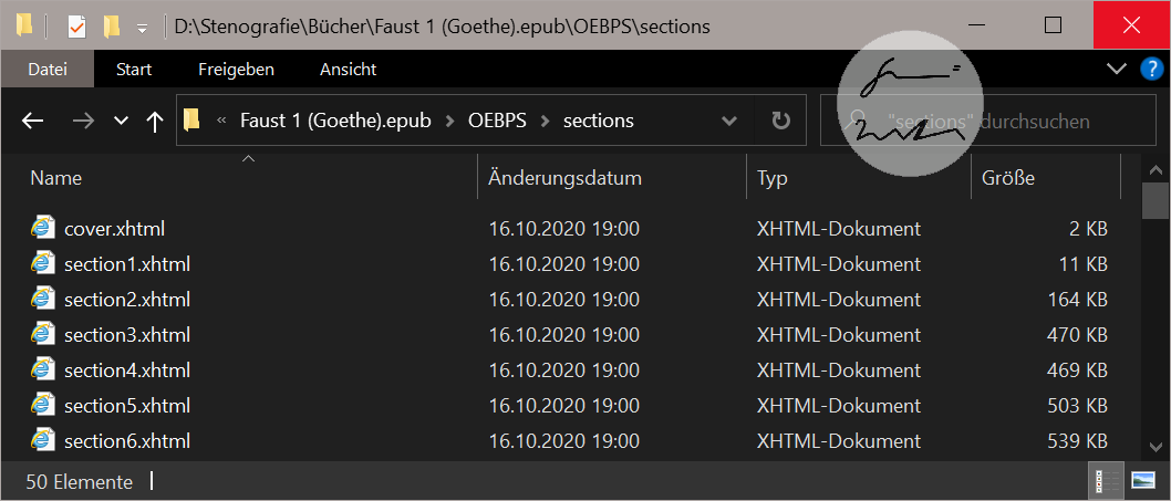 Sektionsdateien in einem E-Book:
